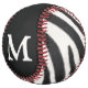This custom monogrammed softball has a realistic zebra fur design that is drawn to look like real fur.. A trompe l'oeil visual illusion makes the monogram appear 3-dimensional.