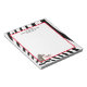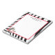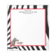 Black & white zebra stripes border the center white space that is bordered in red. A smiling zebra is in the lower left corner and can be removed if you like. Update the contact info with your own name, address and email address to personalize your notepad.