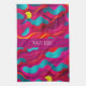 Zebra Strides waves Pink Navy Rainbow Pattern Tea Towel