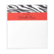 This is the perfect gift or just for you! It's a personalised notepad that has black and white zebra striped print along the top with a red thick stripe under it where you can personalise with your name. Check out the many other colours, designs and products in this line in our store.
