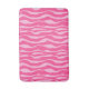 An updated take on a classic animal print bath mat - zebra stripes in deep fuchsia pink on a pastel pink background