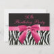 Zebra Stripes & Hot Pink Printed Bow 50th Birthday Invitation