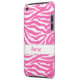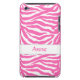 This iPod Touch Case-Mate Barely There case features cute zebra stripes in hot pink on a white background. Replace the name with your choice of name.