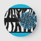 Zebra Stripes with Blue Chrysanthemum Round Clock