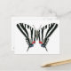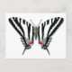This postcard design features my original illustration of a Zebra Swallowtail butterfly. I think this is one of the most dramatic butterflies in North America. The sharp contrast of its black and white stripes is highlighted by a wonderful pop of colour in the blue and red markings on its hindwings. This beautiful butterfly makes an eye-catching and unique addition to this useful postcard.