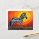A big, yellow, orange, and red sun is the background for a zebra standing among flowers on this fabulous, pop art postcard. Perfect for anyone who loves animals, wildlife, and the outdoors.