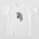 Ringer tee featuring zebra drawing by Mary Rogers. White shirt with black ringer collar and cuffs