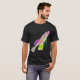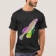 I give wanted to give this a 4 instead of a 5 because these Basic DARK T0shirts run unexpectedly SLIM or Narrow. Which is great if you do not have a potbelly, but I have a paunch. It isn't the shirt's fault that I've got a beer belly. The design and shirt itself is a quality cotton shirt. The color is more of a deep purple, but still a very pretty color. The Basic DARK T-shirts run a bit SLIMMER than the Basic Ts. The neck is a fraction narrower (or seems to be narrower) also. I'm a paunchy middle-aged woman and my neck is 12 inches (31cm) thick and the neckline fell about the same as in the photo of the man, and I had the desire to tug it a bit. So if you're a thick necked man or like loose shirts, be aware these are slimmer shirts. Once I get rid of my lockdown paunch it'll look great. The shirt washed well in cold water with no apparent bleeding. We don't have a dryer, so it hung dry. Did not shrink. Love the colors and the design. The design looks smaller on my shirt than it does on the model on-line. But still, it looks good on the shirt. The printing looks as it does on the model, just the size seems fractionally smaller. Washed garment in cold water, hung dry and design appeared unaffected.