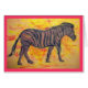 shows mixed media painting of purple zebra with blue stripes ! also "Zebras Rock" slogan