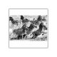 A herd of zebras jumping away from a waterhole, because of a crocodile coming up. Image was taken at Krüger National Park, South Afrika.