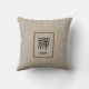 Zen Chinese word and text on beige burlap print Cushion