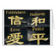 Zen gifts and merchandise features words and chinese symbols for faithfulness, harmony, love and peace.