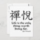 Kanji for Zen joy with the Zen Buddhist proverb, "Life is the only thing worth living for".