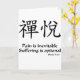 Kanji for Zen joy with the Zen Buddhist proverb, " Pain is inevitable, suffering is optional".