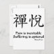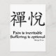 Kanji for Zen joy with the Zen Buddhist proverb, " Pain is inevitable, suffering is optional".