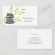 Zen pebble stone stacking business card template for relaxing spa, massage therapy, yoga instructor, beauty salon, meditation classes, mindfulness, health resort, wellness centre, spiritual business, shop, company etc. Elegant modern typography with stacked rocks and bamboo floral plant vector art design. Grey and green colours. Customisable background colour. Simple clean design inspired by nature.