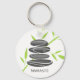 Zen pebble stones stacking and green bamboo leaves Personalised keychain design.