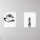 A graceful ink-style print featuring a delicate pine branch and a red-feathered bird in minimalist balance. Its serene composition and neutral tones bring peaceful elegance to Japandi, Zen, or Nordic-inspired spaces.