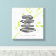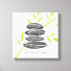 Zen quote pebble stones stacking canvas wall art. Zen pebble stone garden with green bamboo leaves design.