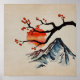 Zen Serenity Landscape - Sakura Mountain Sunset Poster
