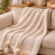 Minimal stone garden design with a smooth ivory base and light tan ripple lines flowing from one corner. The concentric pattern adds quiet visual movement, making it ideal for layering on sofas, beds, or lounge seating within neutral, modern interiors.