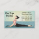 Unique fitness, Yoga/Pilates Instructor Business Card. Card front shows a young woman in Yoga pose on floor mat. Customise front and back card text with your information.