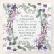 Inspirational scripture glass coaster depicts floral watercolor wildflowers in soft colours of dusty purple, pink, and soft green shades. It features Bible Verse Zephaniah 3:17, "The LORD your GOD in your midst, The Mighty One, will save; He will take great delight in you, He will quiet you with His love, He will rejoice over you with singing." _