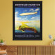 Vintage Zeppelin air travel poster for "trips over sea and land," booked by Hambugh Amerika Line.
