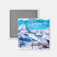Colourful and customisable Zermatt switzerland watercolor painting on a Magnet showcasing the breathtaking winter scenery of the swiss travel destination in the swiss alps. Makes a wonderful gift for every tourist of this popular european travel destination. Make it your own and purchase now as a travel souvenir.