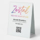 Personalised Zestal double-sided table tent sign. Customise with your Name, Phone Number or Email address and custom QR code to link to your website.