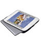 The sleeve is made of nice feeling material and seems very durable. I'm not sure how easy it'll be to clean, but the construction seems sound and the fabric is quick thick. I also like the double zipper. The printing is lovely and appears durable. The white on black contrast is nice, and the design very elegant.