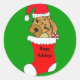 Cute and fun puppy boxer in a stocking round stickers. Great for sealing Christmas Card envelopes or decorating holiday packages.