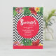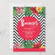 A stunning tropical-theme, watercolor invitation for a summer party. The black and white zig zag pattern is embellished with tropical flowers. A bold, red-centre dot holds your party details. <a href='http://www.freepik.com/free-vector/zig-zag-lines-with-watercolor-flowers-party-flyer_896685.htm'>Designed by Freepik</a>. <br/><br/>The card is easy to customise with your wording, font, font colour, paper shape options and choice of six paper types.<br/><br/>Not exactly what you're looking for? All our products can be custom designed to meet your needs at no extra charge.<br/><br/>Simply contact us at heartfelthelper@gmail.com<br/><br/>Coordinating products available: Just ask us!