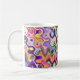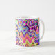 One, very modern, bright, colourful, fun and funky mug with a digital art image of squiggles, waves and zig-zags. Not to be used when suffering from a hangover ;)