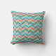 A bright zigzag chevron style patterned pillow in pastel teal blue green orange and salmon. Would look great in a bedroom or lounge to add a accent of colour.