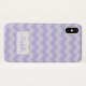 Modern zig zag patterned iphone cover in purple and grey hues. Customise this bold patterned iphone case cover with your name and your family initial or monogram. Currently reads Michelle R. Ideal personalised gift for girls and women. Design by Sarah Trett for www.mylittleeden.com