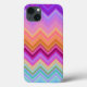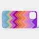 Pretty zigzag pattern of very fine stripes of all colours you can possibly find in a sunset: Shades of orange and pink are dominating, but there is also some yellow, red and purple.