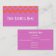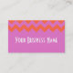 A distinctive business card for many types of business, with a chevron pattern of Magenta Pink and Brilliant Orange zigzags and white lettering. Ready for you to personalise.