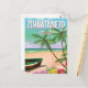 Zihuatanejo Mexico holiday travel poster featuring palm tree's, fishing boat on a hot sandy beach.