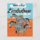 Zimbabwe Zebra vintage travel poster. Visit Zimbabwe holiday travel poster print.