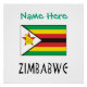 Personalised poster featuring the Zimbabwean Flag with the word ZIMBABWE below in black letters. The flag is red, gold, green black and white. A place to add your name, in green letters, allows you to give it a personalised touch. If you prefer to create a gift, add someone else's name. Cool to decorate for a family reunion or other event.