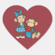 "This relatable cartoon design features a contrast in emotions between two monkeys, Zina and Mimo. Zina, in her blue polka-dot dress and bow, stands with a thoughtful expression and a comforting hand on Mimo's shoulder. Mimo, sitting in his blue overalls, looks apathetic or bored. The scene captures a common dynamic in relationships or friendships, blending care and indifference. The vibrant, classic cartoon style makes this a charming yet slightly humorous image. This versatile design is suitable for products aimed at couples or friends, especially those who appreciate lighthearted, observational humor about relationships. Imagine it on apparel, humorous greeting cards, or relatable stationery."