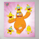 The little teardrop-shaped yellow Zingoz love to play with their big orange counterpart, Zangoz! In this image, a grinning, mop-headed Zangoz juggles three Zingoz on his head and arms, while two more (including a tutu-wearing dancer) frolic at his feet.