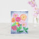Artistic, whimsical mix of Zinnia flowers - Cheerful pink, yellow, and orange watercolor art drawing on a blue swirl background. Beautiful art for spring planting season. > Cool idea for a flower garden lover, mother nature, outdoor hiker, or green thumb fans. > Customisable: Add your own custom name or text.