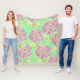 Curl up in this cosy, fleece blanket with a BIG bold zinnia pattern in purple and green.