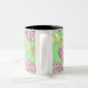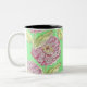 Zinnia pattern on a Coffee Mug. Start your morning with a burst of spring. Big, Bright Zinnia blossom in purple and green.