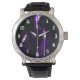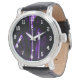 Watch with a bold retro screen-print style design featuring large zippers in purple, black and white. A customisable design for you to personalise with your own text, pictures and ideas. Created using an original photograph and digital techniques by Jess Perry.