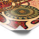 In this composition, Mucha incorporated twelve zodiac signs in the halo-like disc behind the woman's head, one of Mucha's customary motifs. The majestic beauty of the woman is emphasised by her regal bearing and elaborate jewellery.