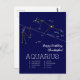 Zodiac Constellation Aquarius or water bearer. The colour of the stars is roughly real. Star and space objects' names. The Water Bearer is associated with Deucalion, who built a ship with his wife Pyrrha to survive the great flood. He also is identified as Ganymede, the son of Trojan king Tros, who was taken to Mount Olympus by Zeus to act as a cup-carrier to the gods. Neighbouring Aquila represents the eagle that snatched the young boy. Aquarius is the Zodiac constellation. The Sun transits the area along the Ecliptic line between January 21 and February 18. Unique, one-of-a-kind, elegant, funny birthday greetings postcard for anyone. Customisable. You can change the image and the template text "Happy birthday, Christopher!" You can transfer this design to a variety of other products. Just choose the product from the scrollable option "Transfer design to a product". Do not forget to use the "Personalise", or "Edit design" button, or the blue link "Details" --> "Click to customise further" --> "FILL/FIT" to ADJUST THE DESIGN TO THE SIZE AND SHAPE of the product, to rotate it, to change the position, type, colour of the font, or to add your own text from the scratch. Just be creative, customise one, buy, enjoy, and be happy.