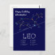 Zodiac Constellation Leo or lion. The colour of the stars is roughly real. Star and space objects' names. According to Greek mythology, this is the Nemean Lion which was killed by Heracles (Hercules to the Romans). The case is deemed to be the first one of twelve Heracles labours. The lion was invulnerable to the weapons of the time, so Heracles had to defeat the Lion with his bare hands. Zeus commemorated this labour by placing the Lion (or the lion's skin?) in the sky. Leo is one of the zodiac constellations and one of the largest constellations in the sky. The Sun transits the area along the Ecliptic line between July 23 and August 22. Unique, one-of-a-kind, elegant, and funny birthday greetings postcard for anyone. Customisable. You can change the image and the template text "Happy birthday, Christopher!". You can transfer this design to a variety of other products. Just choose the product from the scrollable option "Transfer design to a product". Do not forget to use the "Personalise", or "Edit design" button, or the blue link "Details" --> "Click to customise further" --> "FILL/FIT" to ADJUST THE DESIGN TO THE SIZE AND SHAPE of the product, to rotate it, to change the position, type, colour of the font, or to add your own text from the scratch. Just be creative, customise one, buy, enjoy, and be happy.